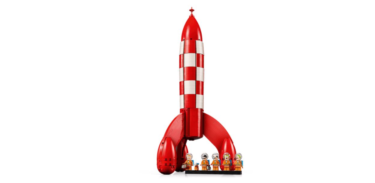 The rocket mimics the iconic red-and-white chequered design from Hergé’s classic adventures Destination Moon and Explorers on the Moon. The set consists of 1,283 pieces and costs $159.99.