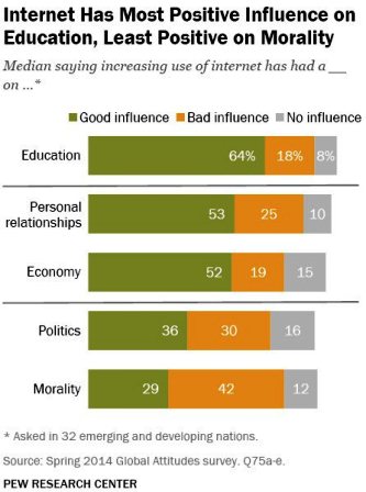 The Pew Research Center global survey showed a median of 64% of respondents in 32 emerging and developing nations say the Internet is a positive for education.